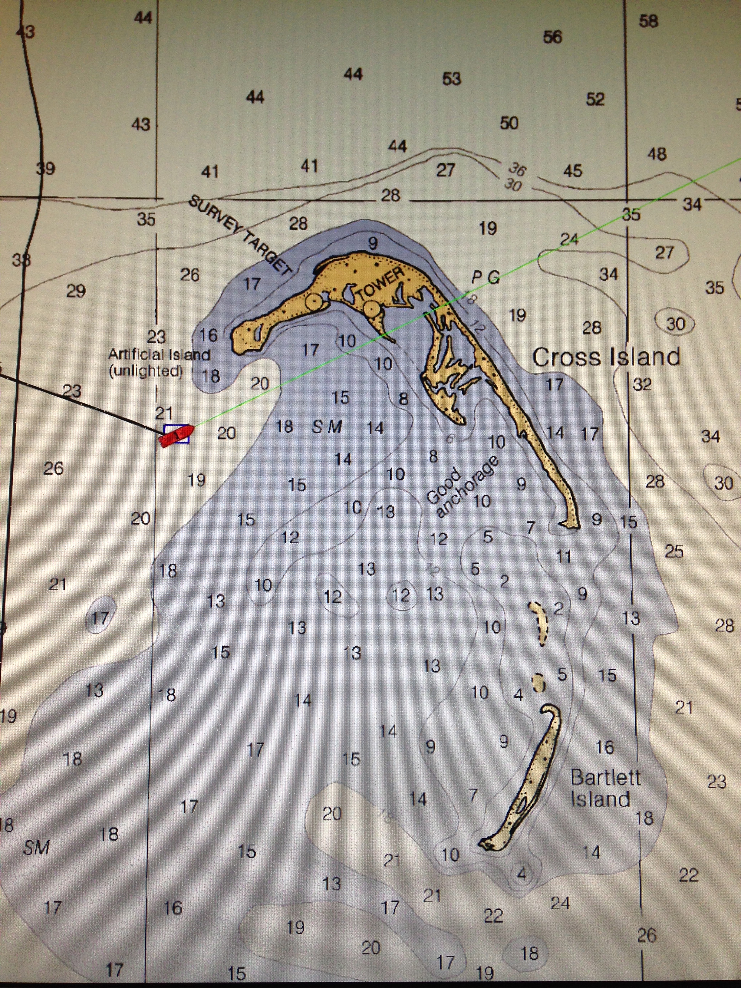 Weather delayed… seeking shelter in the lee side of Cross Island